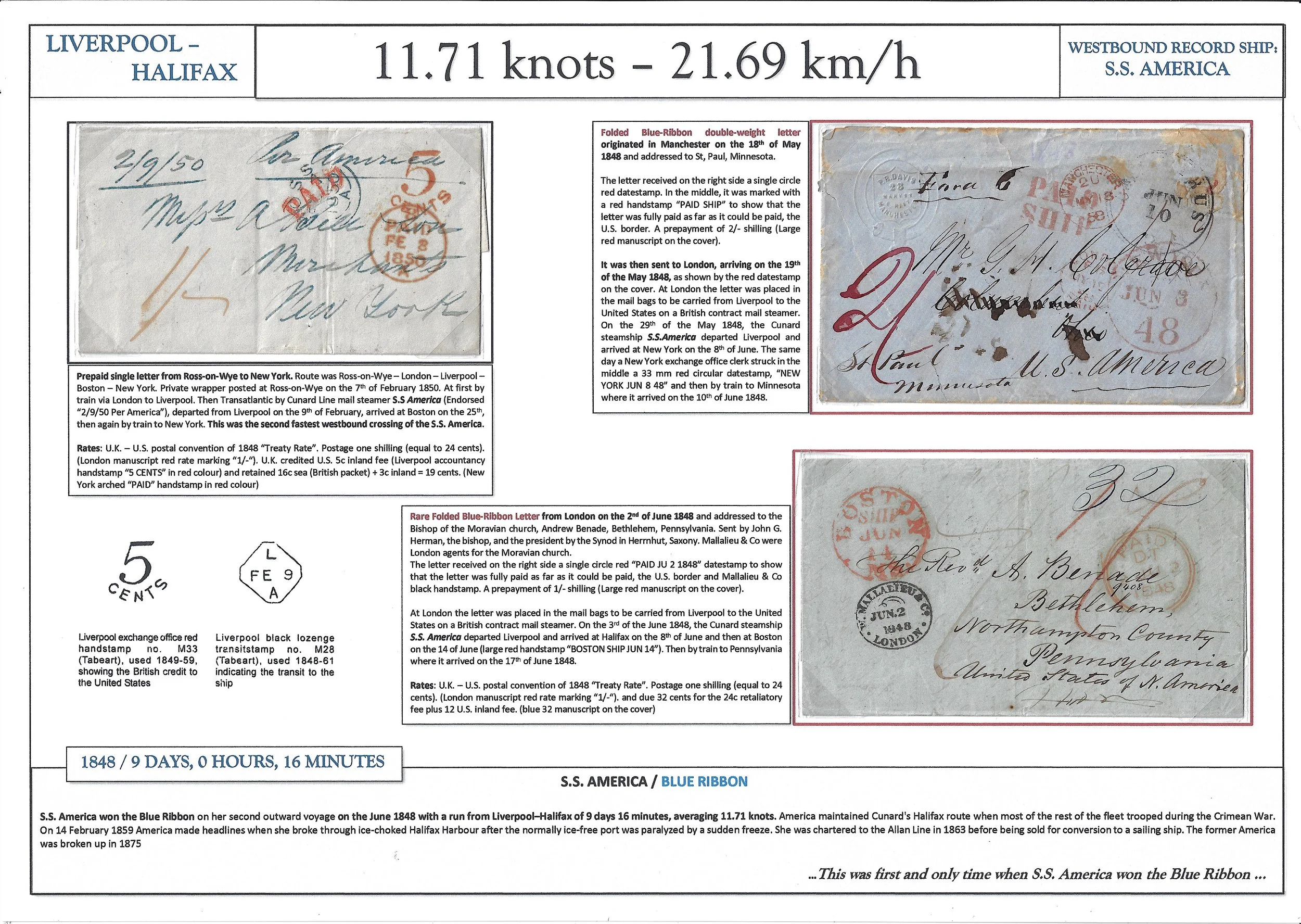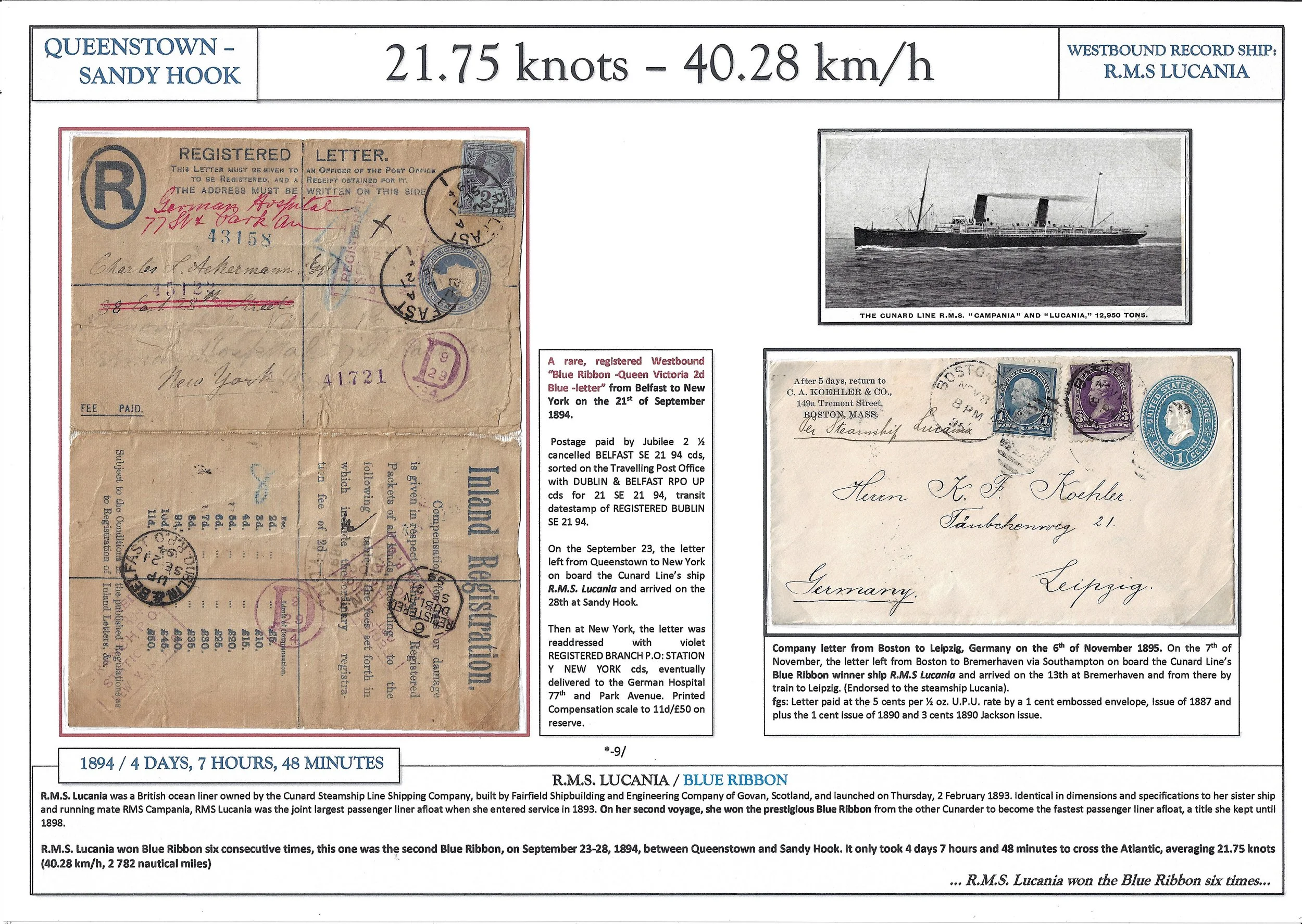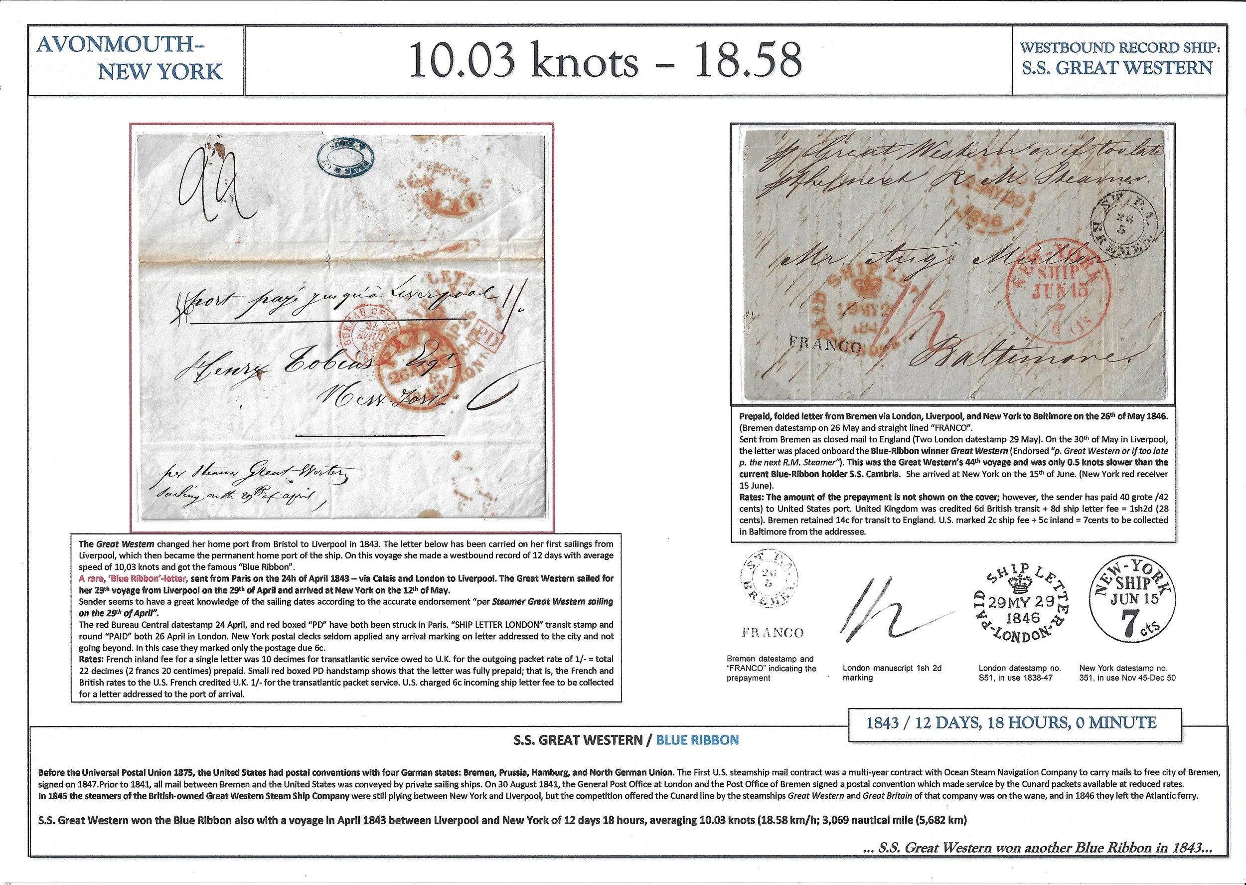 At the beginning of the 19th century, mail travelled across the Atlantic in 20-30 days, but by the end of the 19th century it was only a matter of a few days, and with the speed and safety of ships, the reliability of delivery also improved significantly. The Blue-Ribbon award given to the fastest crossing the Atlantic gives the best picture of the development of the speed of mail delivery.