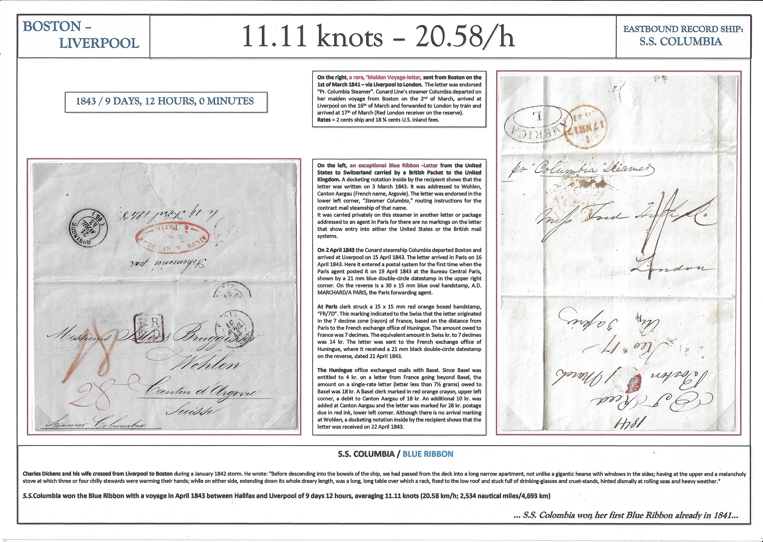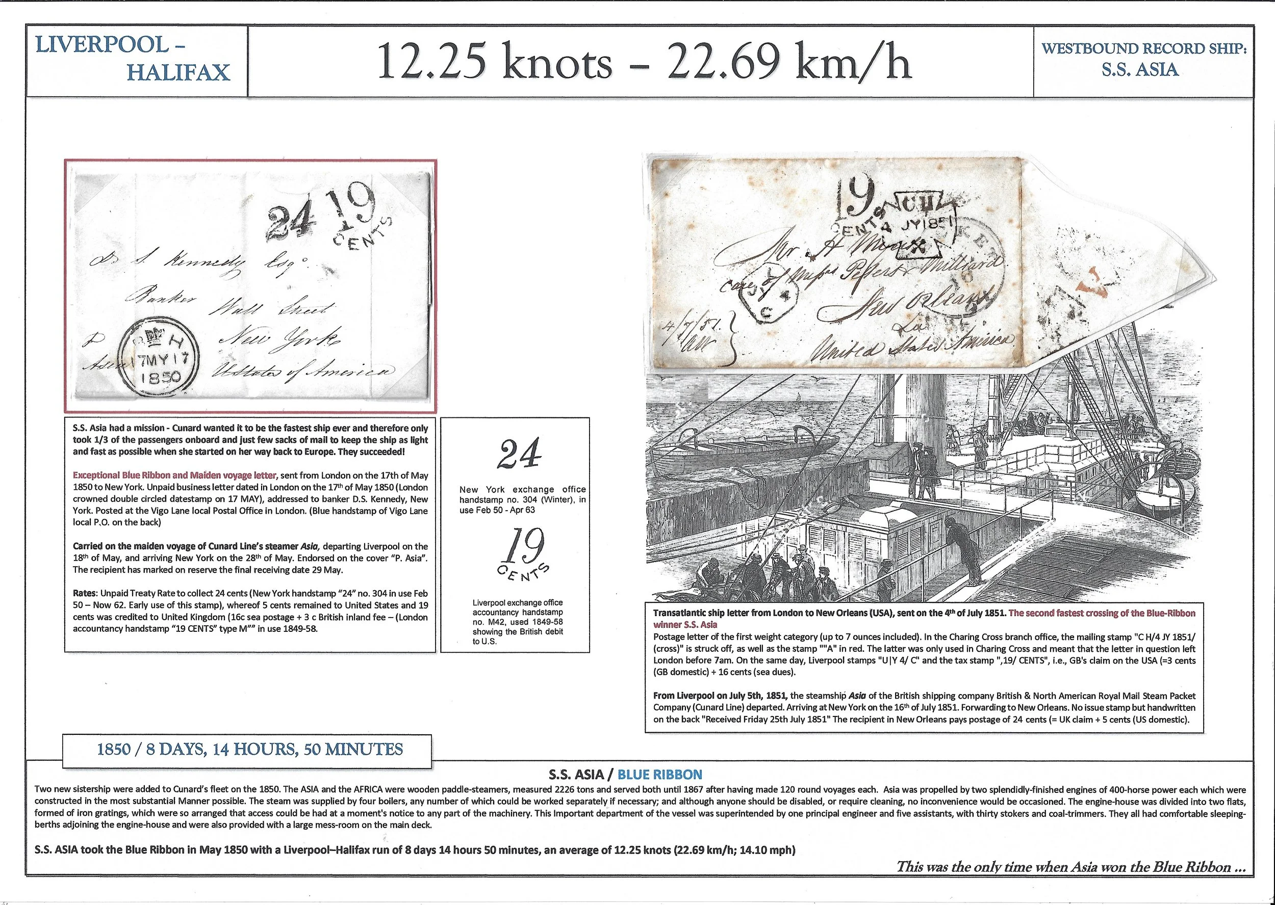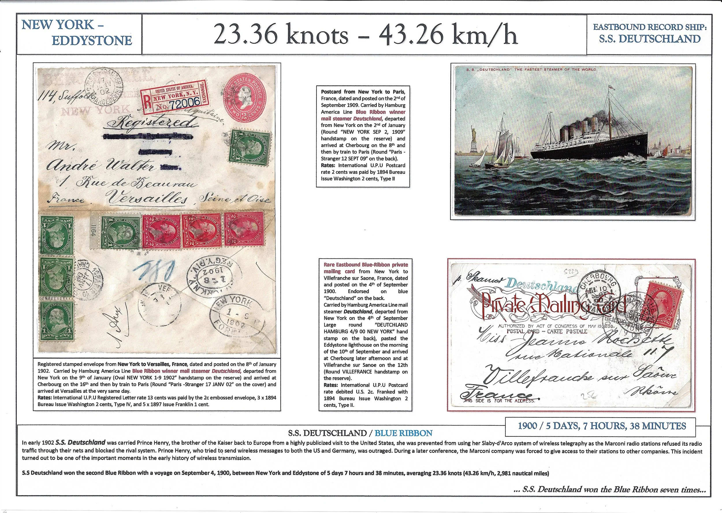 At the beginning of the 19th century, mail travelled across the Atlantic in 20-30 days, but by the end of the 19th century it was only a matter of a few days, and with the speed and safety of ships, the reliability of delivery also improved significantly. The Blue-Ribbon award given to the fastest crossing the Atlantic gives the best picture of the development of the speed of mail delivery.
