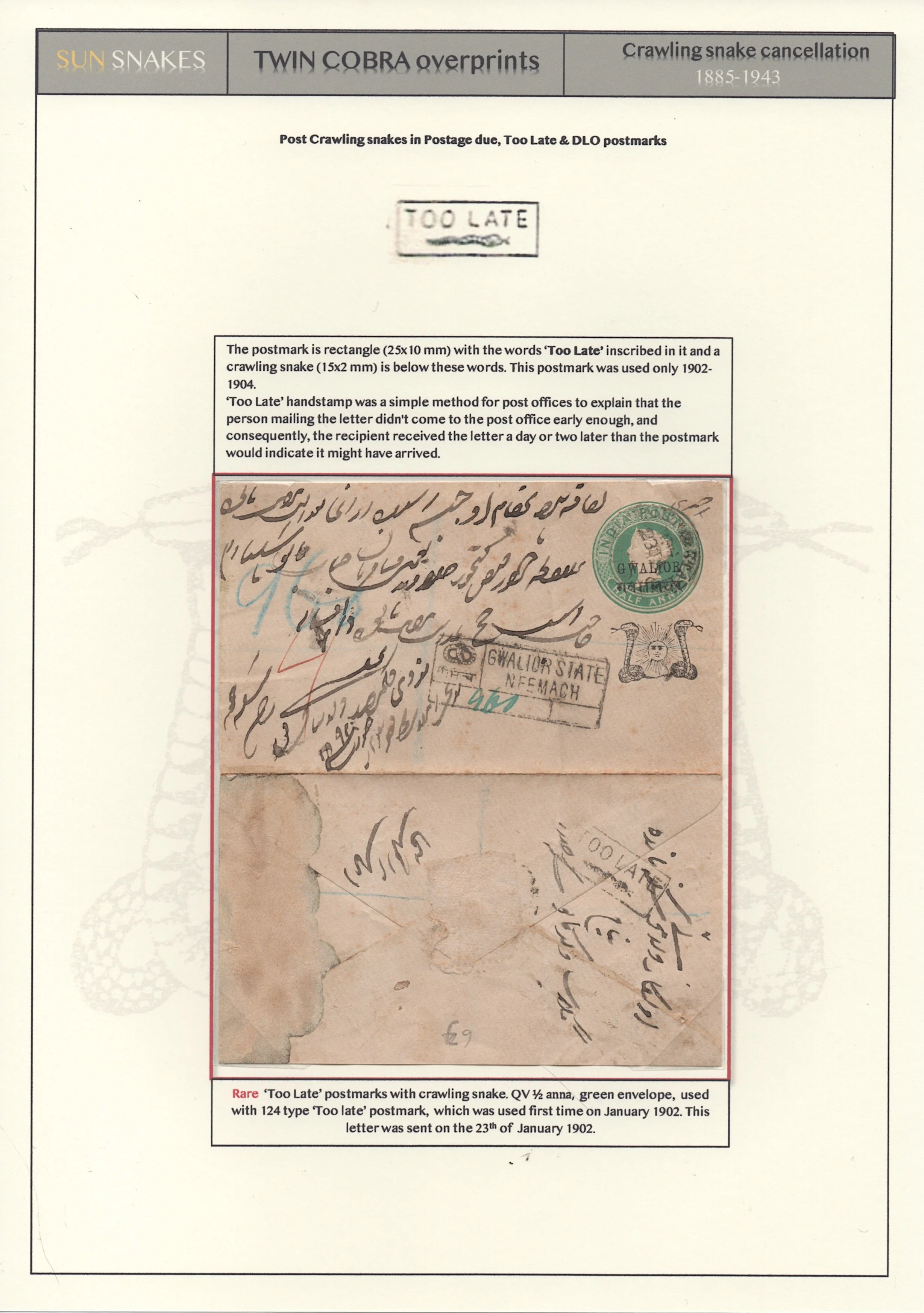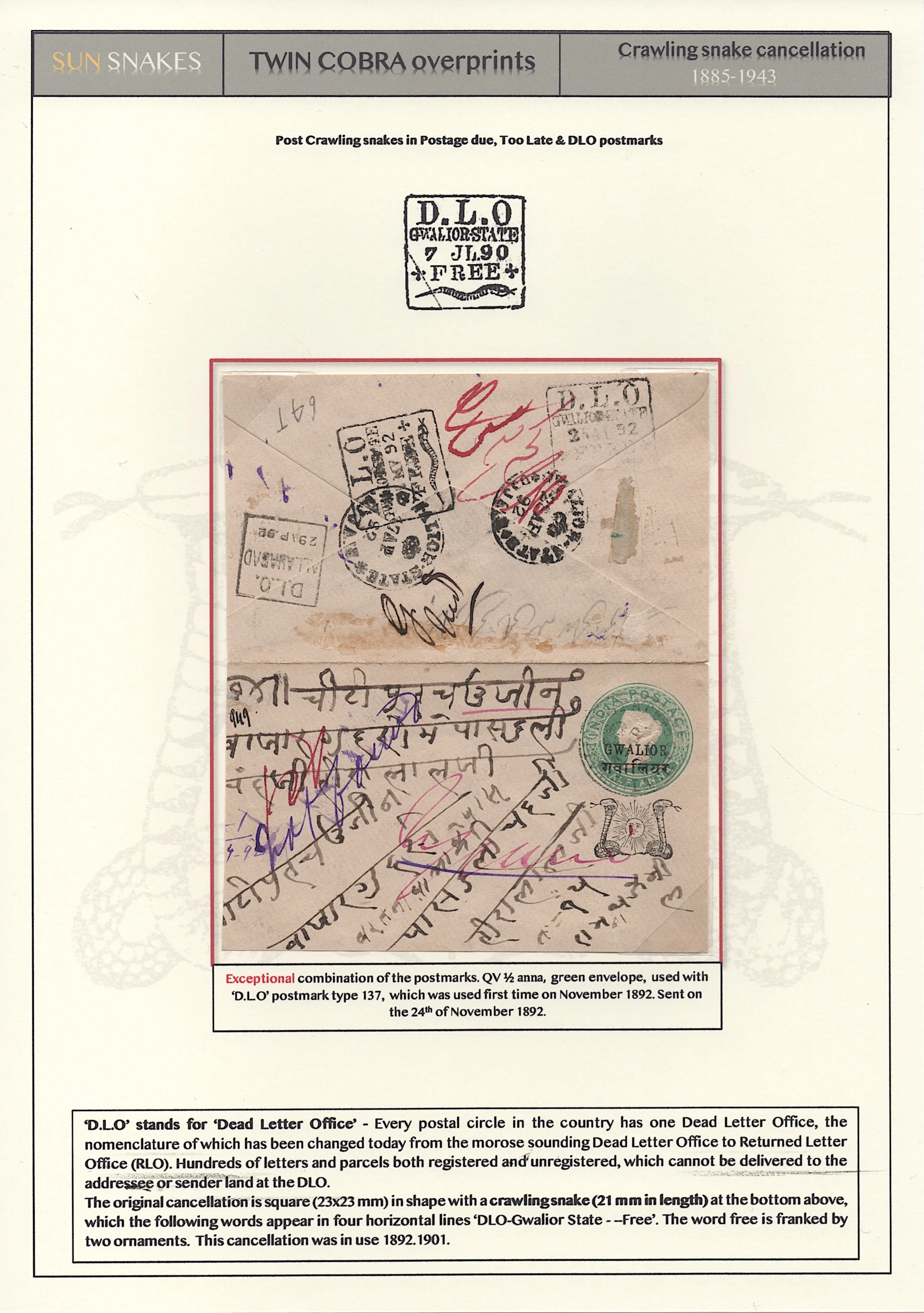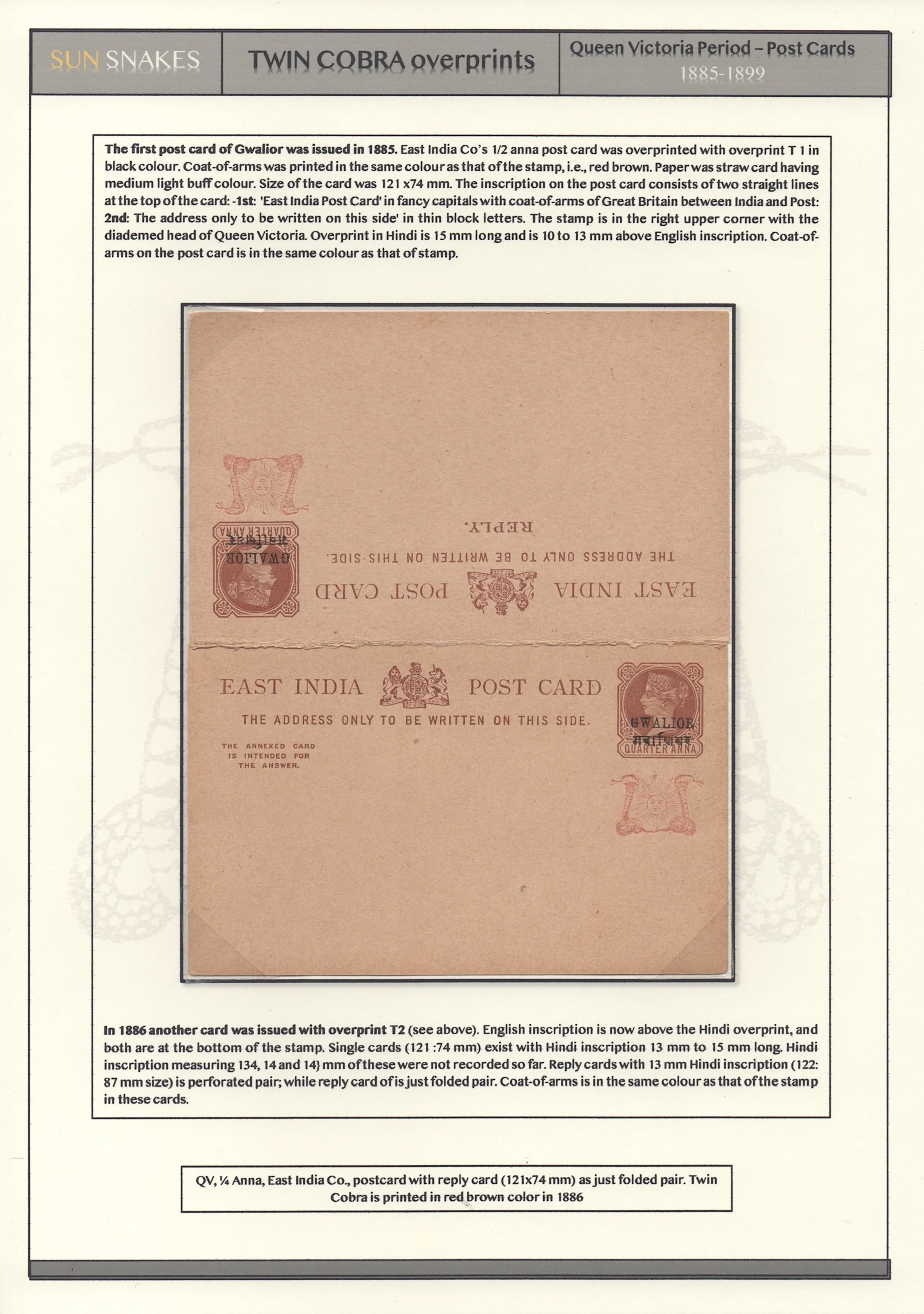 Today (12.2.2022) I started to put together the Sun Snakes- Twin Cobra Overprints and Snake cancellations of Gwalior - exhibition pages.