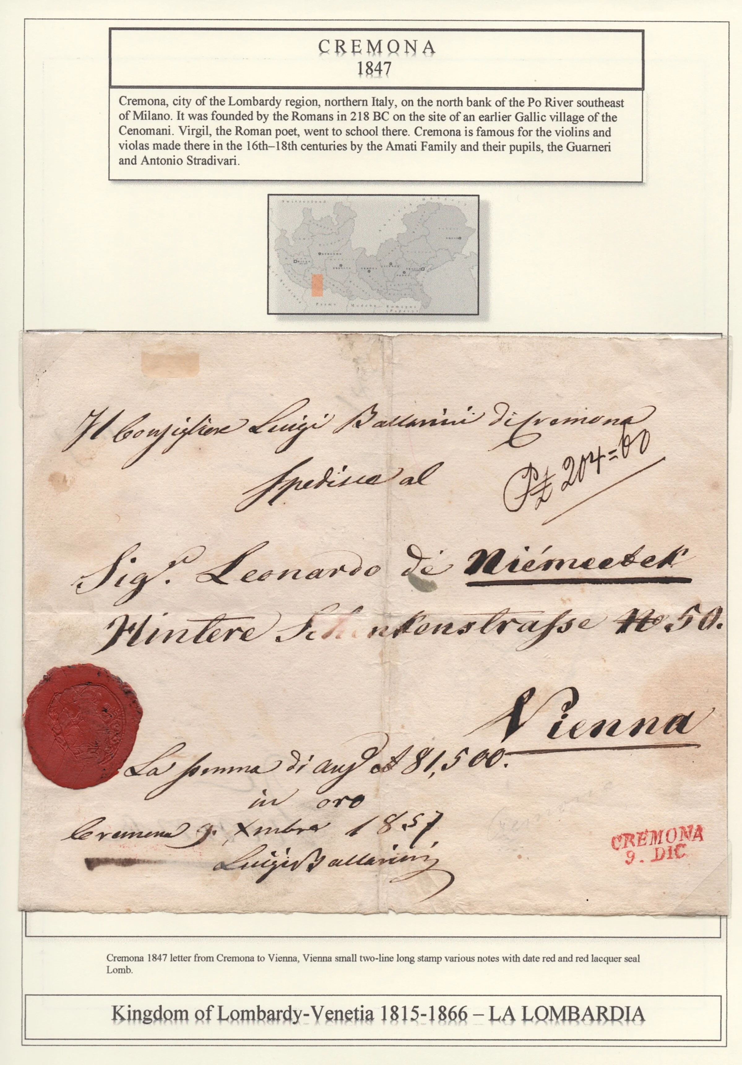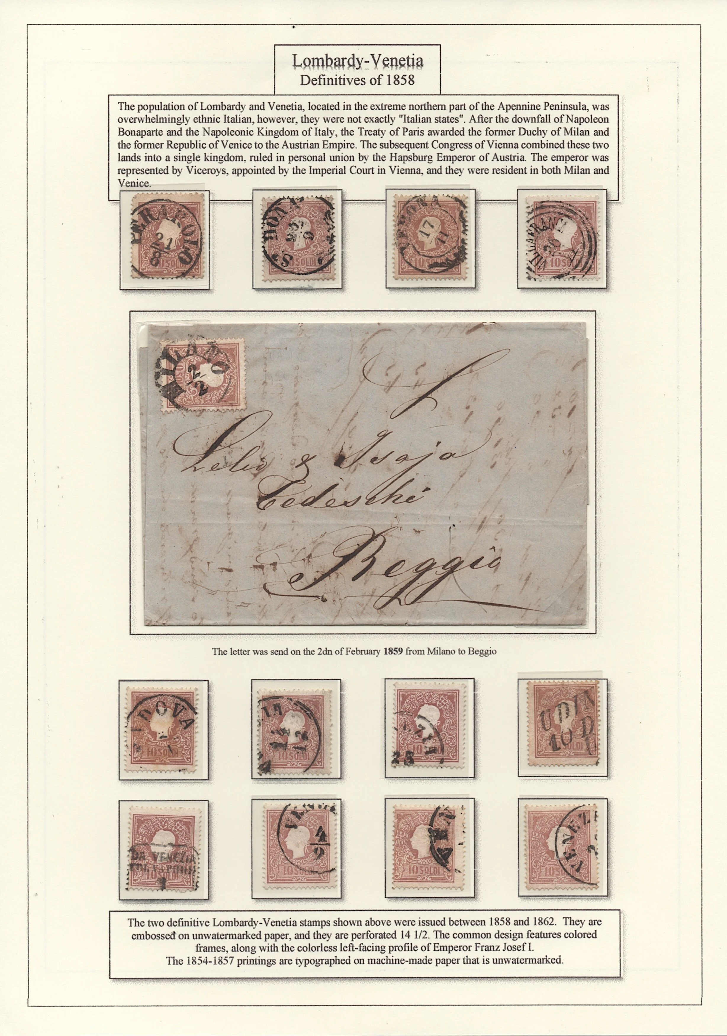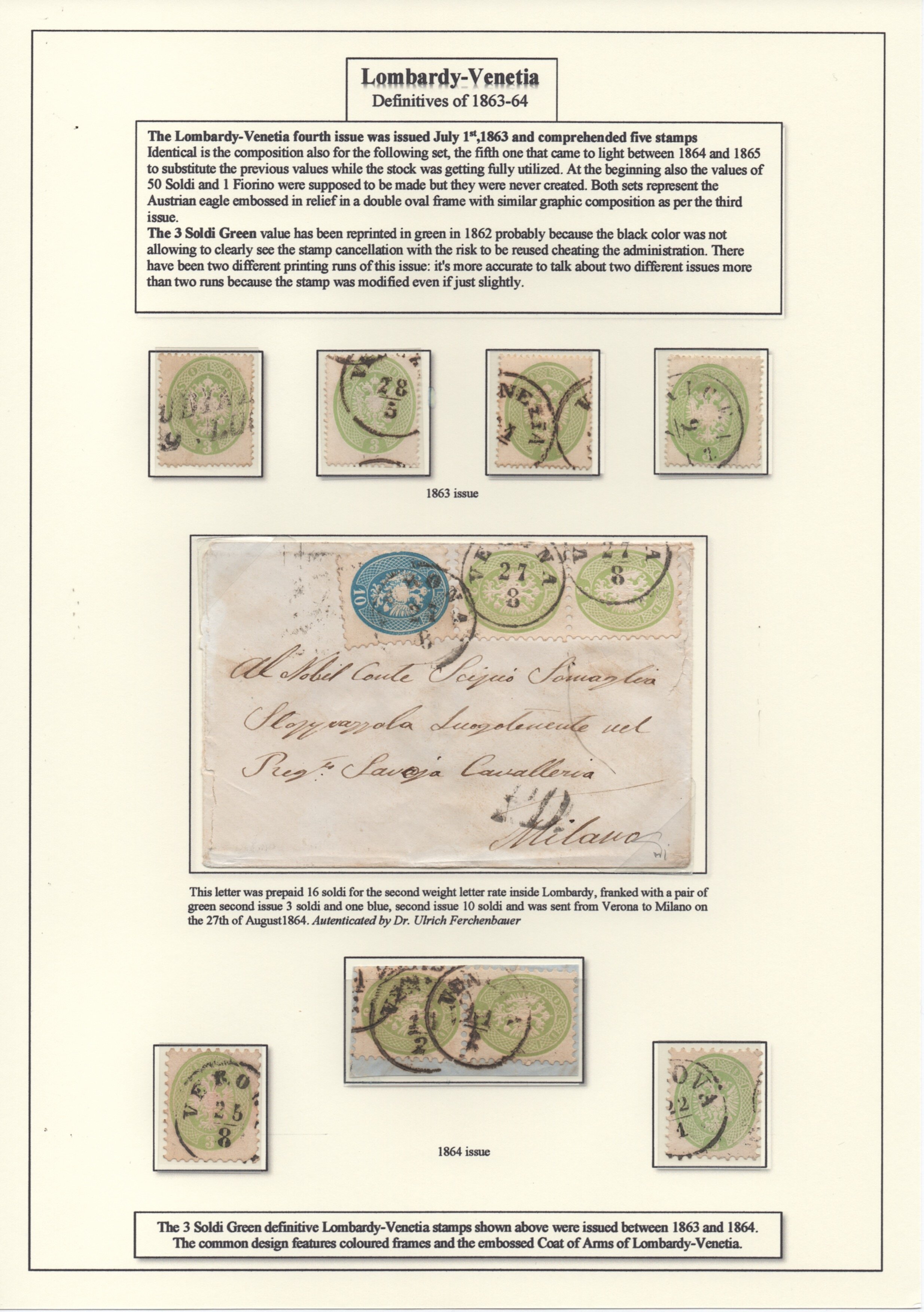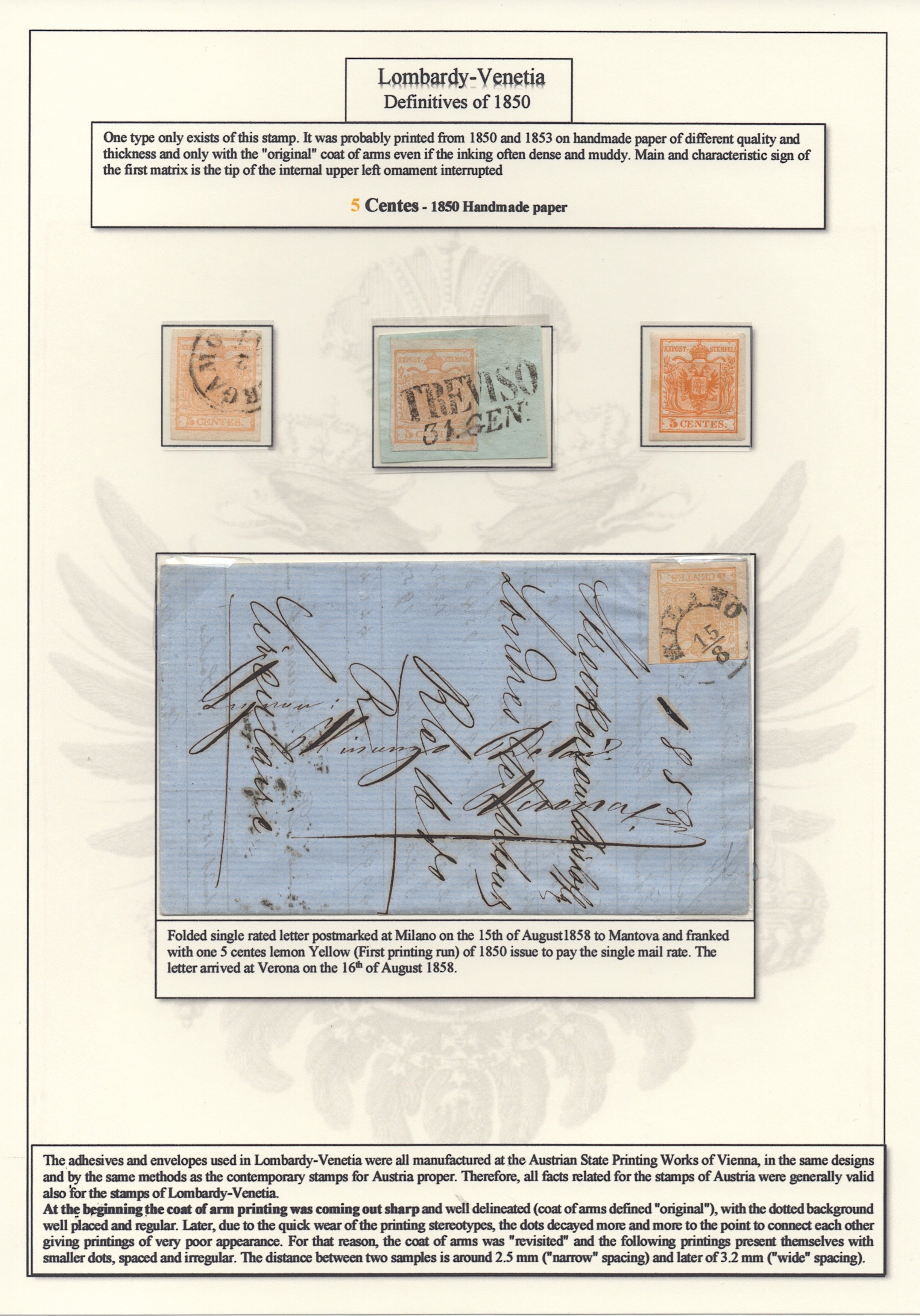 Lombardy-Venetia collection is one of the largest collection of mine, including the years from 1815 to 1866. There are at the moment only new 12 “exhibition pages” from these years already made - the actually number of the pages is around 120, so I will add new ones here, one at the time, as soon as I am able to finalize them - pages below are A4 collection pages. For the exhibition I will change the page size from A4 to A3, add some covers, stamps and write a lot deeper information about routes and rates of them, which they are lacking at the moment almost totally, mostly because the old version of it was written in German and will take time and will to translate everything back to English.